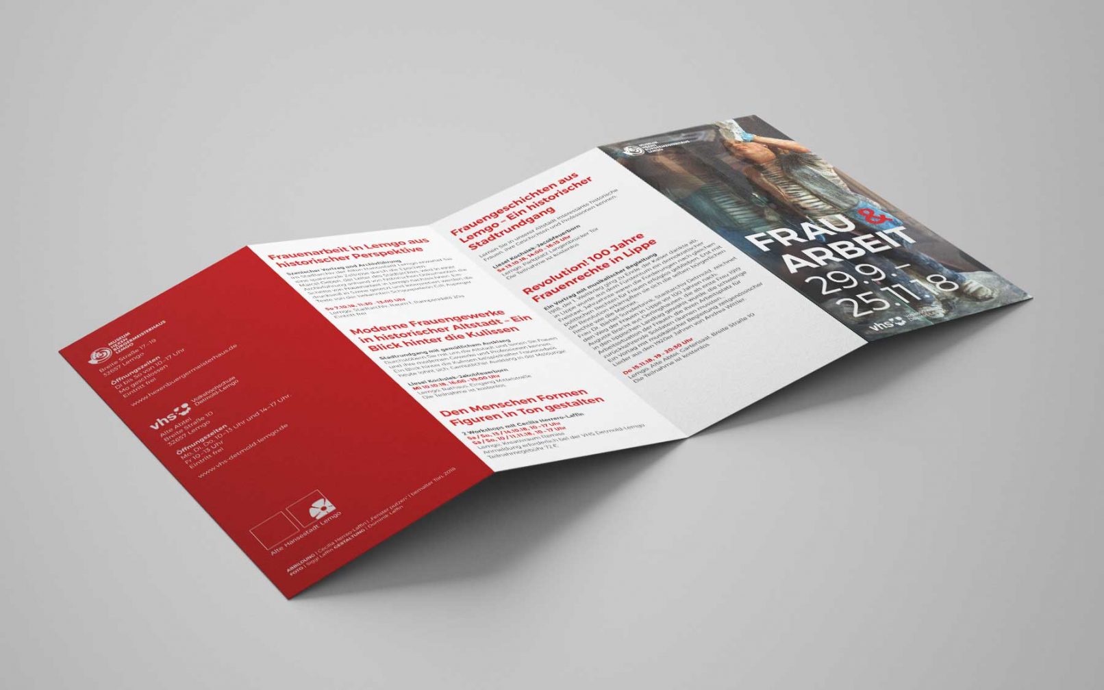 Leporello und Plakate zu „Frau & Arbeit“, – eine Veranstaltungsreihe der Gleichstellungsstelle der Alten Hansestadt Lemgo in Kooperation mit dem Museum Hexenbürgermeisterhaus, dem Stadtarchiv Lemgo, der VHS Detmold-Lemgo, dem Stadtarchiv Detmold und der Künstlerin Cecilia Herrero-Laffin. Zur Ausstellung erschien eine 24-seitige Broschüre die im Museum Hexenbürgermeisterhaus erworben werden kann.