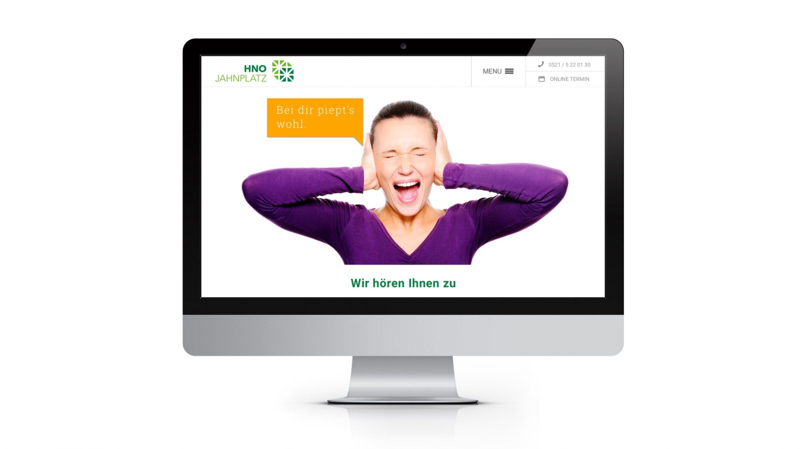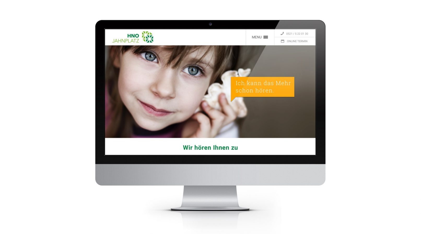 HNO Jahnplatz im Zentrum von Bielefeld bietet ganzheitliche Behandlungsmöglichkeiten von der klassischen HNO-Medizin über Traditionelle Chinesische Medizin. In enger Zusammenarbeit mit dem Kunden gestaltete ich ein neues Logo, Visitenkarten/ Terminkarten, Briefbögen, Praxisschilder und Aufnahmeformulare. Das Webdesign wurde als responsive TYPO3 Projekt durch 10Vorne umgesetzt.