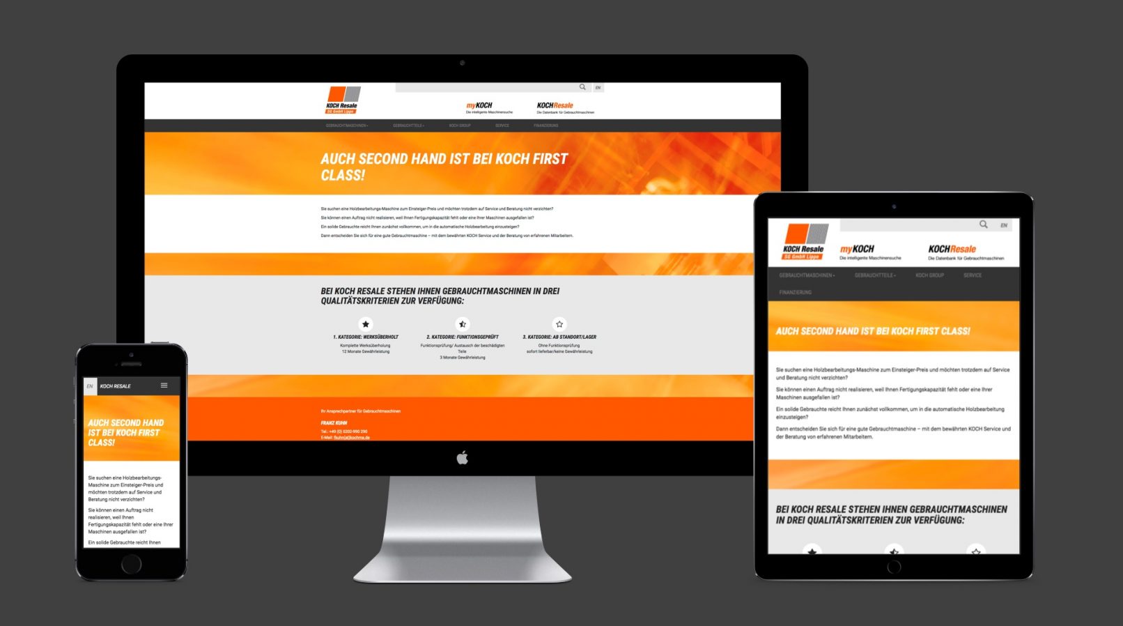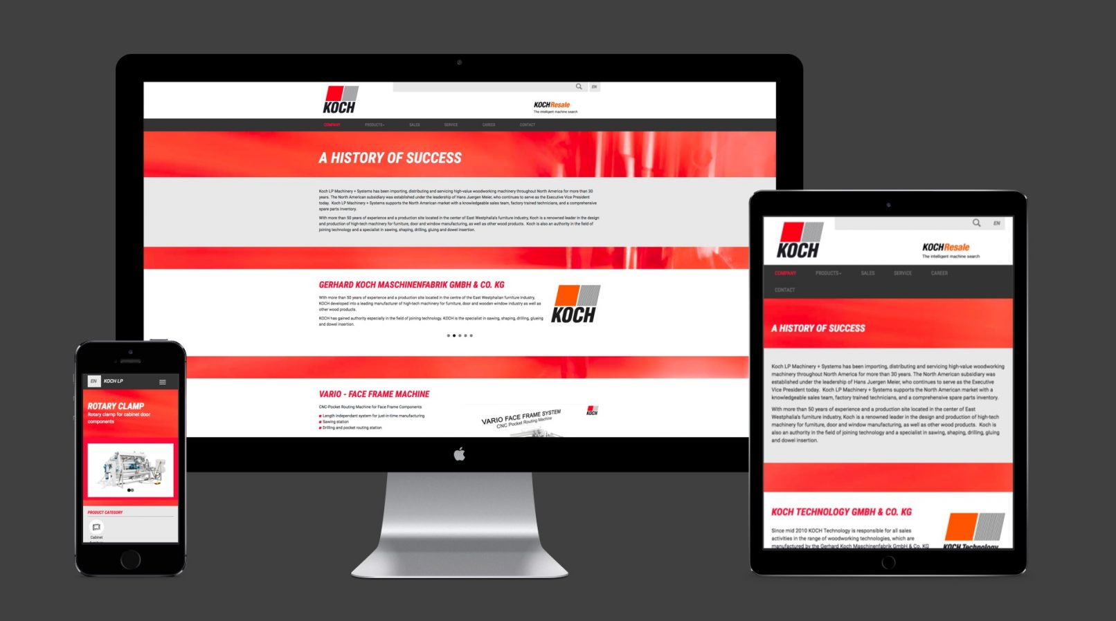 Die KOCH Gruppe besteht aus 5, selbständig agierenden Unternehmen aus dem Bereich Maschinenbau. Das Unternehmen hat sich mit seiner innovativen und qualitativ hochwertigen Maschinentechnologie weltweit einen Namen als Spezialist für die Anwendungen Sägen, Bohren, Fräsen, Leimen und Dübeln gemacht. Wir entwickelten einen neuen, zeitgemäßen Internetauftritt, die den Auftritt der Unternehmen vereinheitlichen. Realisation mit TYPO3 durch 10vorne