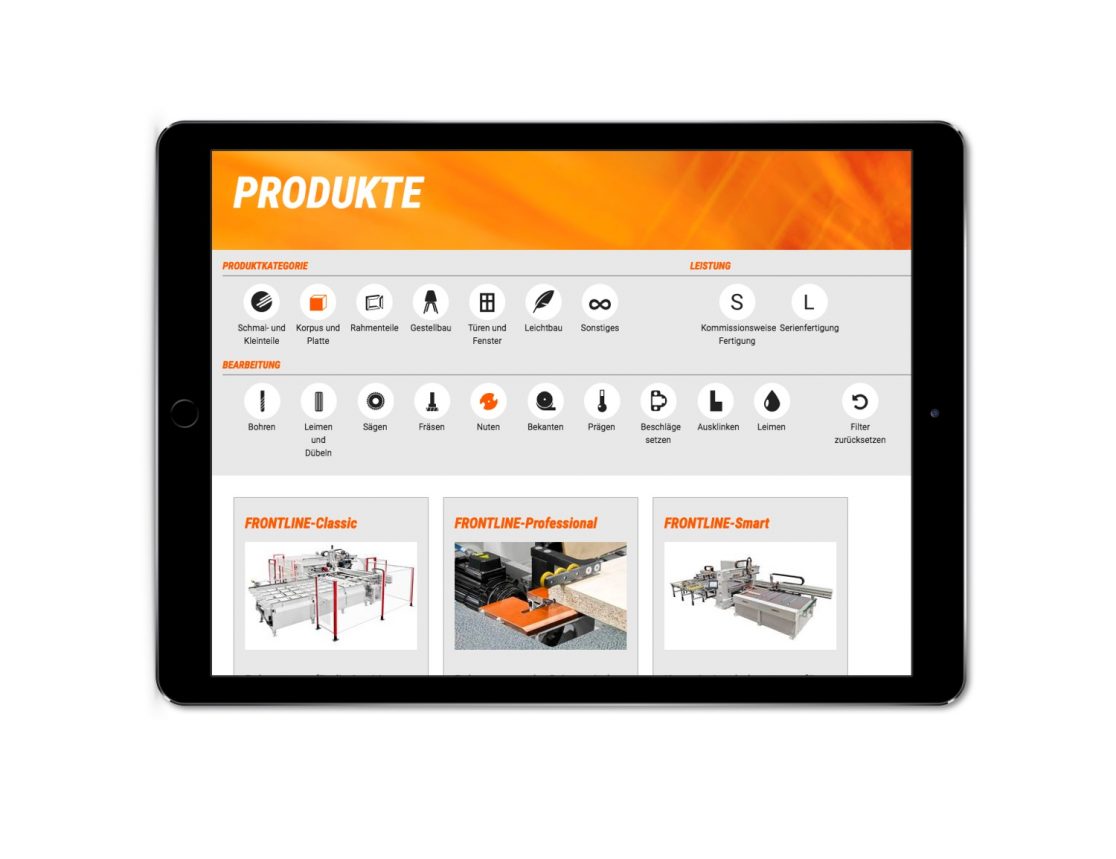 Die Koch Gruppe produziert eine große Auswahl an Spezialmaschinen. Mit dem Produktfinder kann der Kunde nach Anforderungen filtern.